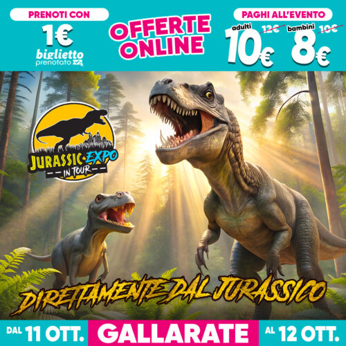 PAGHI ONLINE 1€ E BLOCCHI L'OFFERTA PER JURASSIC EXPO ON TOUR A 10€